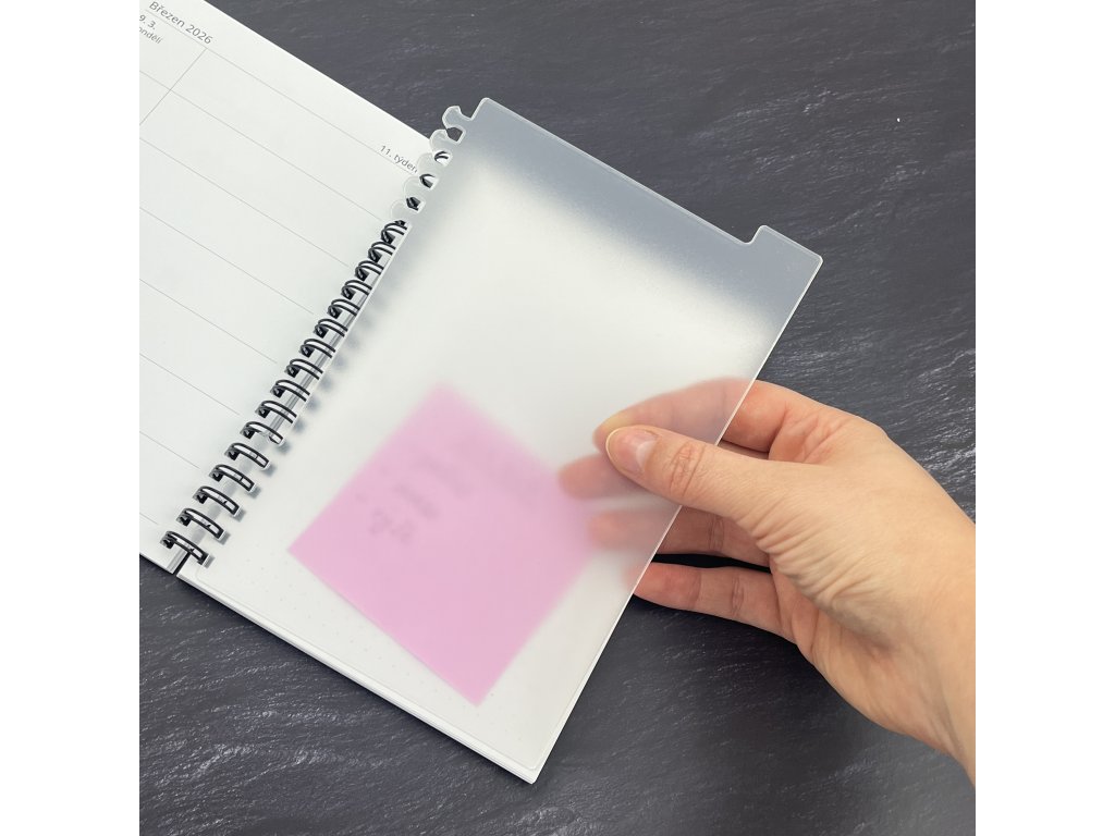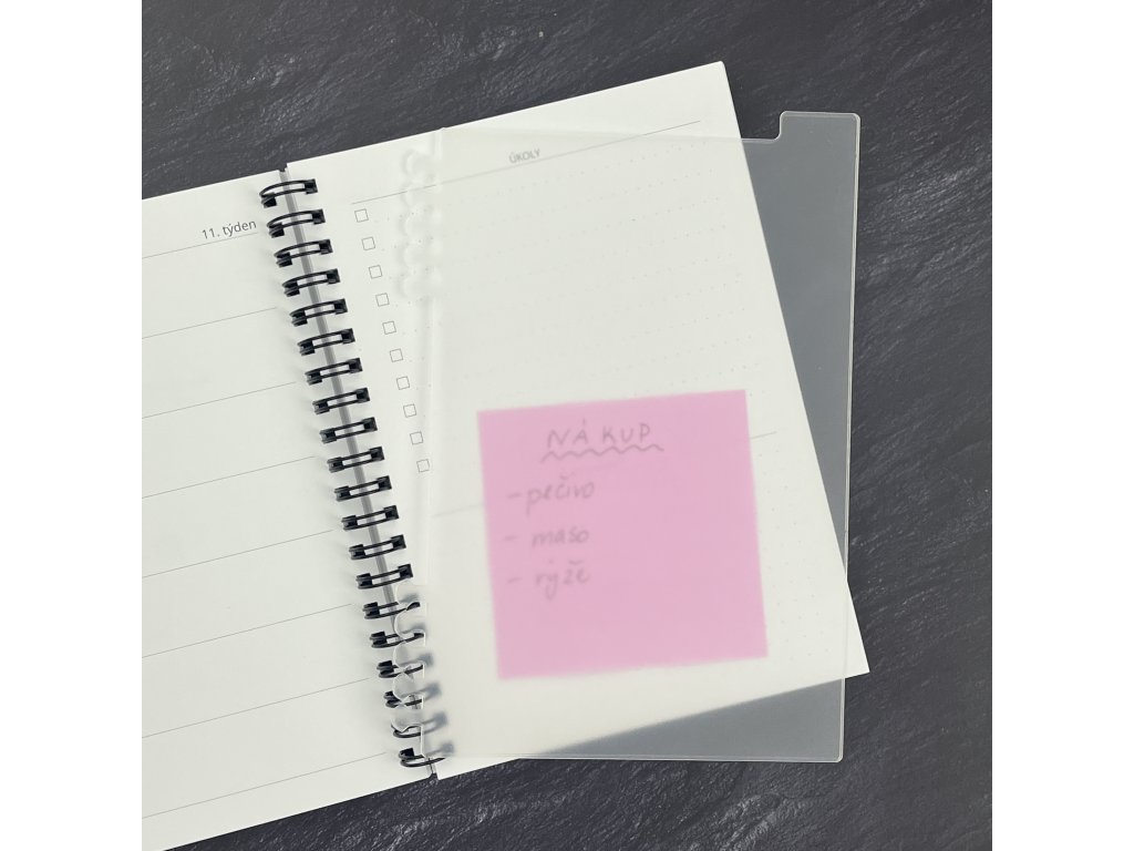 Plastový rozdělovač do kroužkového diáře B6 pomáhá udržet přehled, strukturu a rychlou orientaci v plánování jednoduše, přehledně a bez zbytečných rušivých prvků.