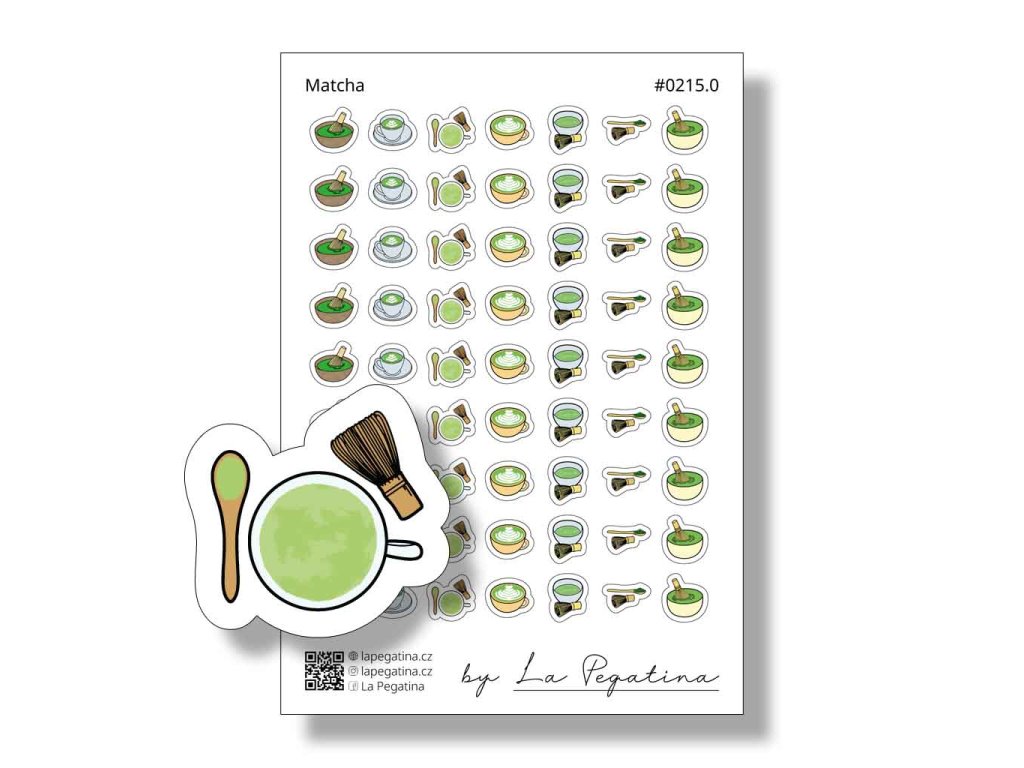 Samolepky Matcha slouží k přehlednému zaznamenání chvil s matcha rituálem, přípravou čaje i momentů klidu v diáři nebo plánovači.