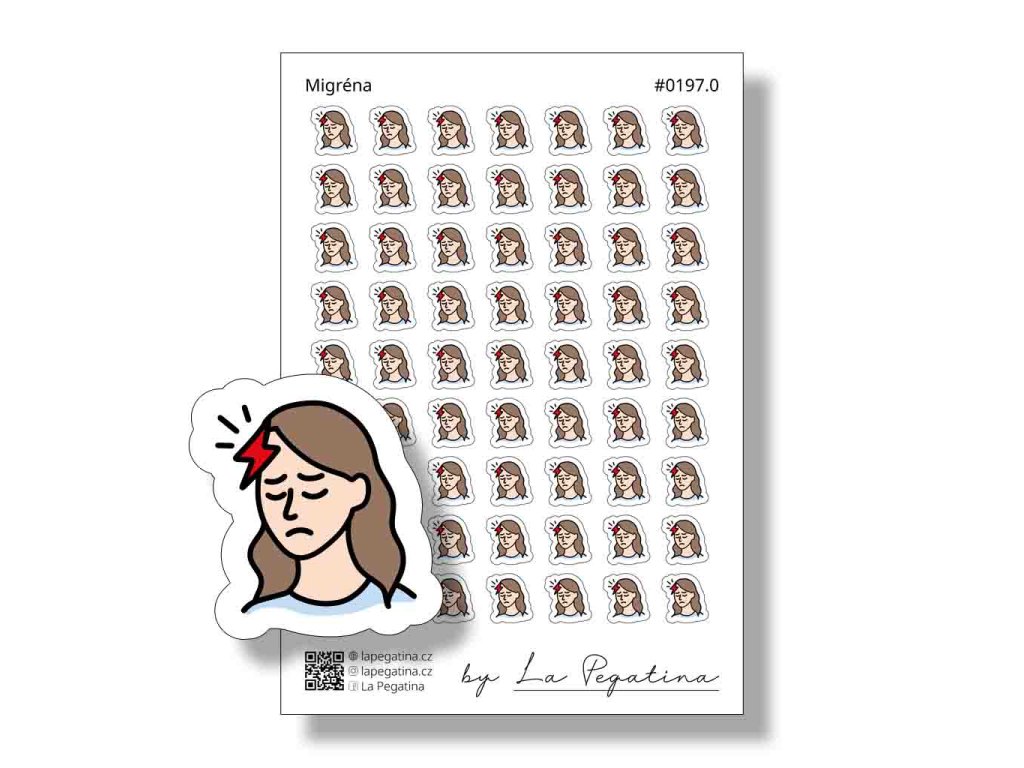 Samolepky Migréna slouží k přehlednému zaznamenání dní, kdy Vás trápí bolest hlavy nebo migréna. Pomohou lépe sledovat zdravotní stav i souvislosti v každodenním režimu.