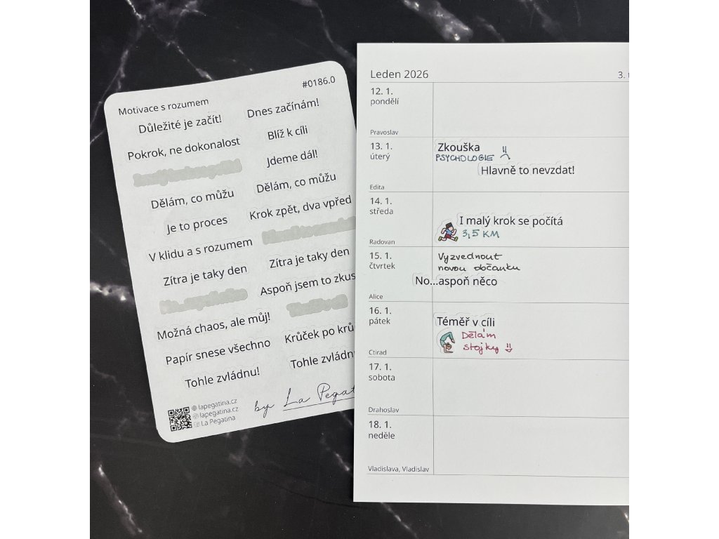 - Podpora na horší dny: Vlepte si povzbudivou frázi tam, kde víte, že ji při plánování opravdu uvidíte – třeba k týdennímu přehledu nebo úkolům.
