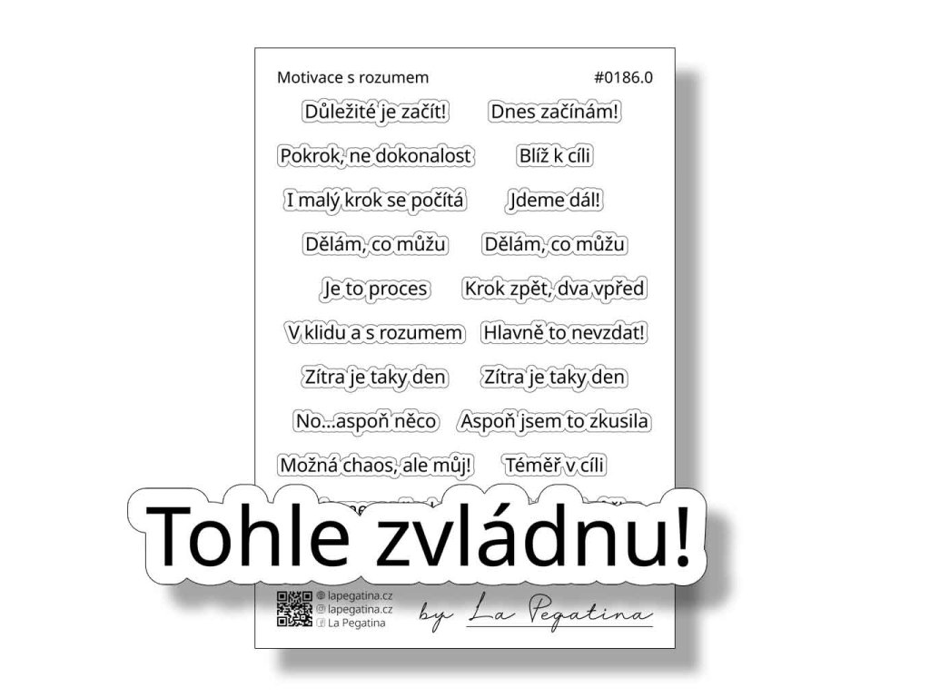 Samolepky Motivace s rozumem přinášejí jemné, ale účinné připomenutí, že ne každý den musí být produktivní na maximum. Texty jako „Krůček po krůčku“, „Zítra je taky den“ nebo „V klidu a s rozumem“ vás provedou i náročnějším obdobím a pomohou plánovat s klidnou hlavou. Skvělé pro každého, kdo chce budovat návyky udržitelně a bez zbytečného tlaku.