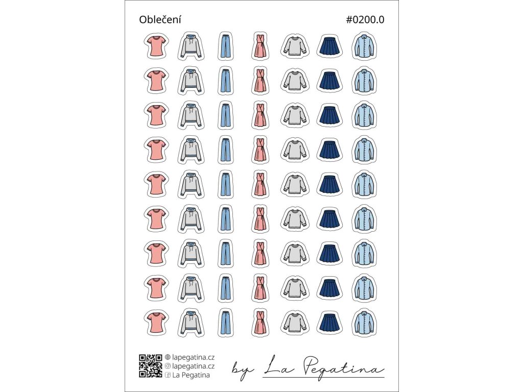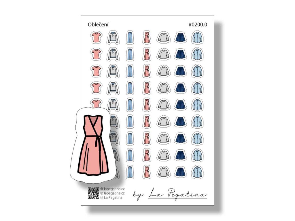 Samolepky Oblečení slouží k přehlednému označení péče o šatník, nákupů oblečení i plánování praní, třídění nebo výběru outfitů v diáři.