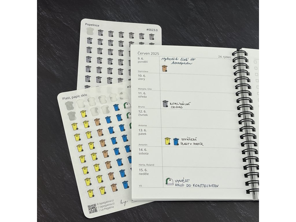- Použijte je na kalendář nebo do diáře, abyste si naplánovali dny, kdy je potřeba vynést konkrétní druh odpadu.