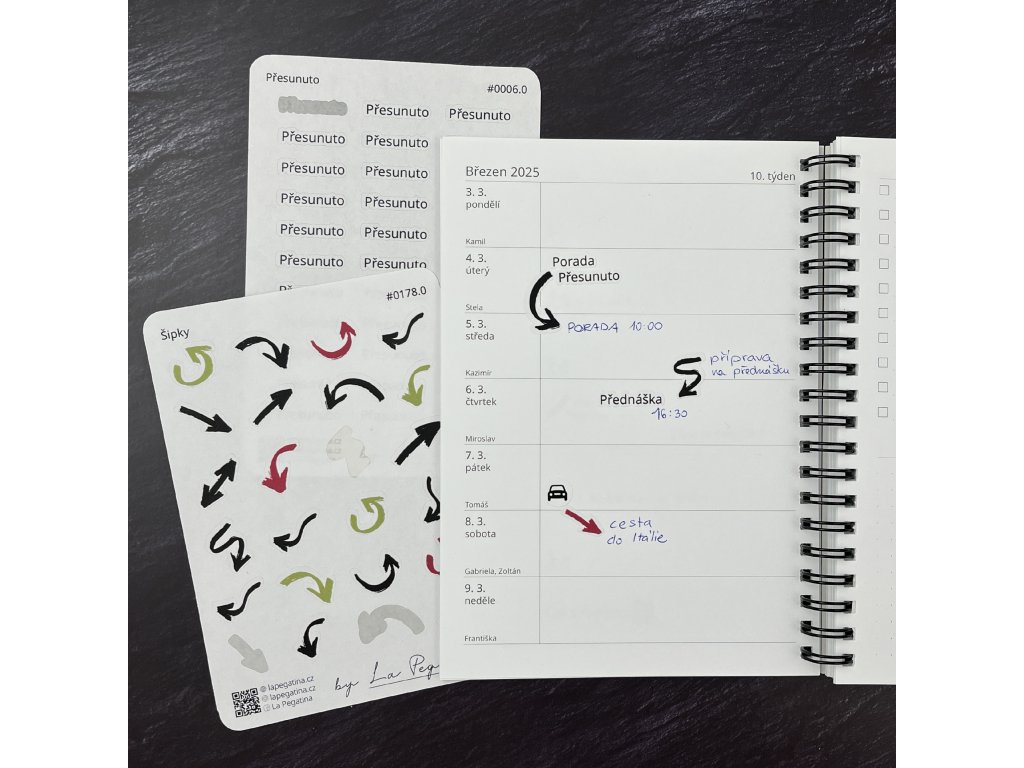 Samolepky Šipky přehledně zvýrazní změny, přesuny nebo důležité body ve Vašem diáři.