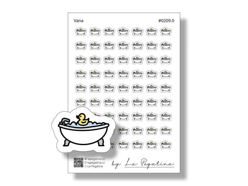 Samolepky Vana Vám pomohou jednoduše zaznamenat chvíle odpočinku i plánovanou péči o sebe. Ikona vany je jasným vizuálním symbolem pro relaxaci, regeneraci i domácí wellness, díky kterému na tyto momenty v nabitém týdnu nezapomenete.